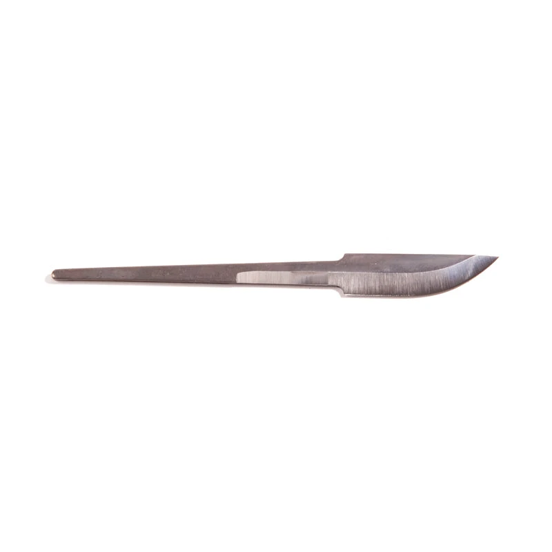 This would be a good blade for a small puukko knife. This blade is from Laurin’s “Progressive Tempered” line, which mimics laminated blades without incurring the added thickness of lamination, resulting in a very sharp, very durable blade that slices better than a laminated blade because it is thinner. The progressive tempering results in a blade with an edge hardened to 63 Rockwell, with a body that is softer but more durable.