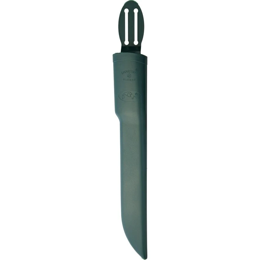 This is a solid, functional fillet knife with a nice, long, flexible stainless steel blade featuring the Marttiini signature etched into it. The handle is made from textured rubberized plastic and offers a very solid grip even when wet, and it has both a guard and a hooked pommel so the knife will never slip out of your hand. The knife is surprisingly lightweight, which reduces hand and wrist fatigue if you’re using it for a long time.